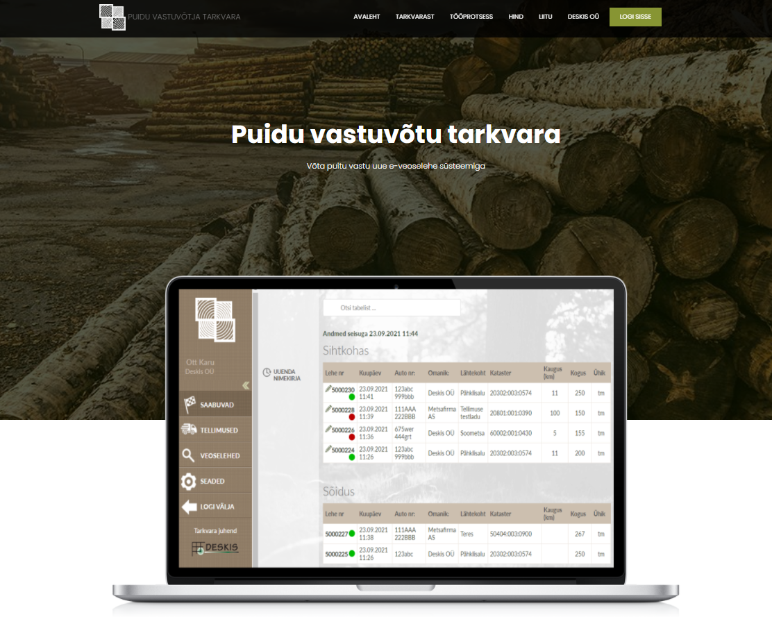 Saabuvad puiduveosed ja nende automaatne piirangukontroll. Vastuvõtukoguste sisestamine Eesti e-veoselehe registrisse (EVR).