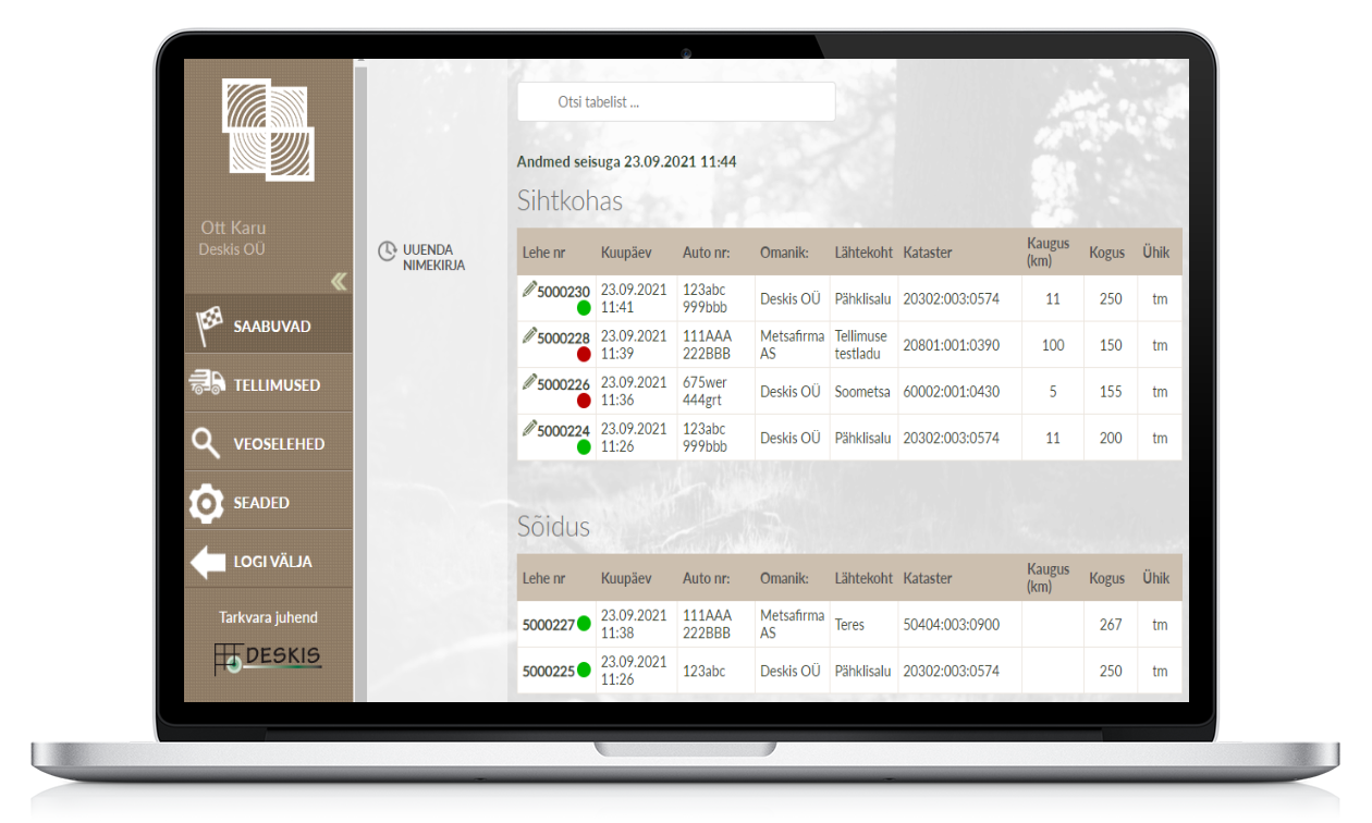 Saabuvad veoselehed vastuvõtjale selgelt näha. Võimalus teha FSC piirangute kontrollpäring.